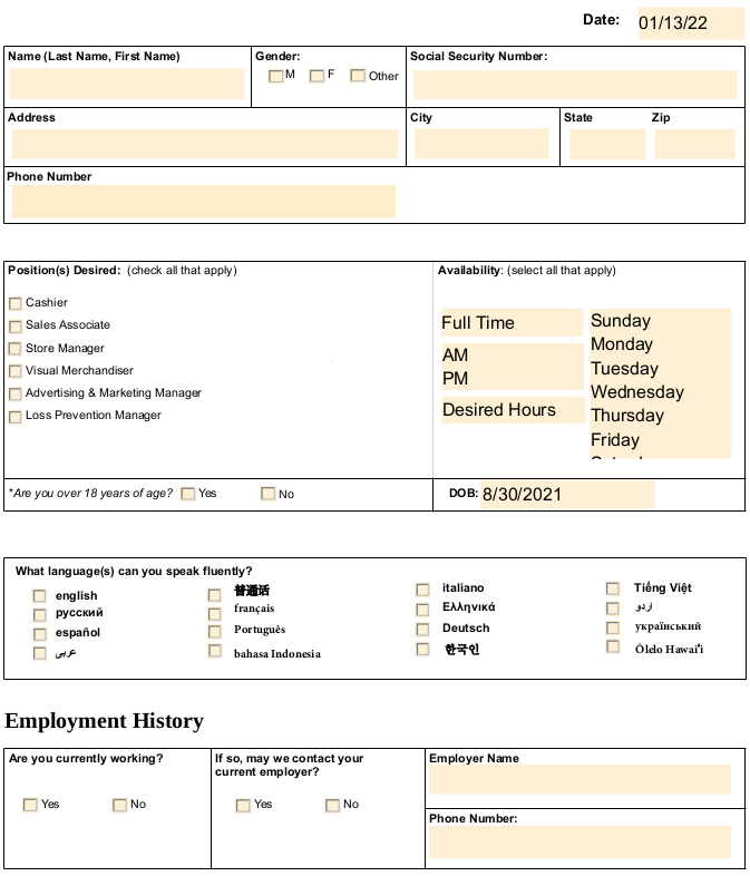 Different PDF field types may require specific input formats. Here’s a table of possible formats for different PDF field types: