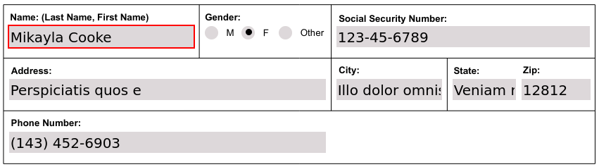 When your user fills in and submits the form, the recepient of the submissions will receive a filled PDF file with user data which should look similar to the following:
