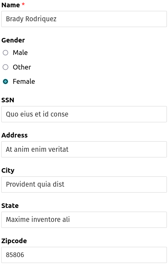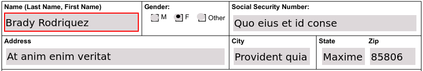| Text (SSN) | XXX-XX-XXXX format | Text fields formatted for Social Security Numbers |