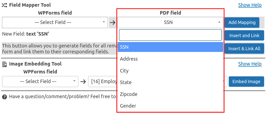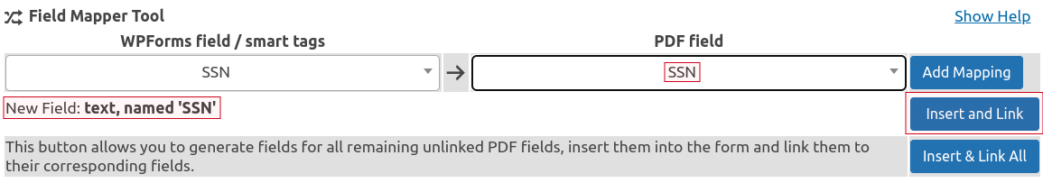 Field Creation and Mapping Tools - Provides options to create new WPForms fields and map them automatically. You can either map individual fields or generate fields for all unmapped PDF fields at once.